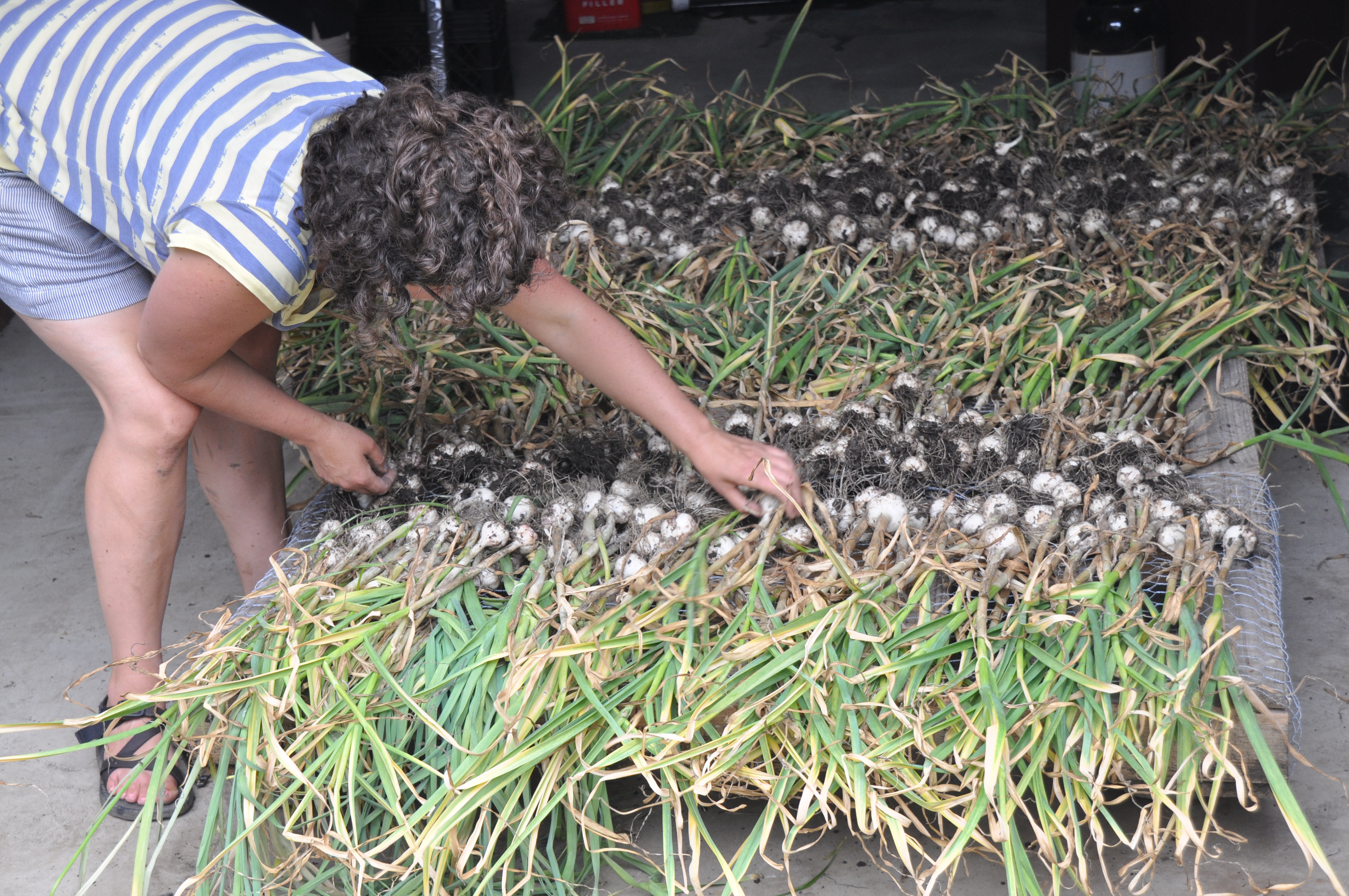 This all started when we planted our garlic back in November. Today that initial gesture came full circle as Melissa and I pulled hundreds of bulbs of garlic from the ground to cure. (We’ll have to go back and count them one of these days…)