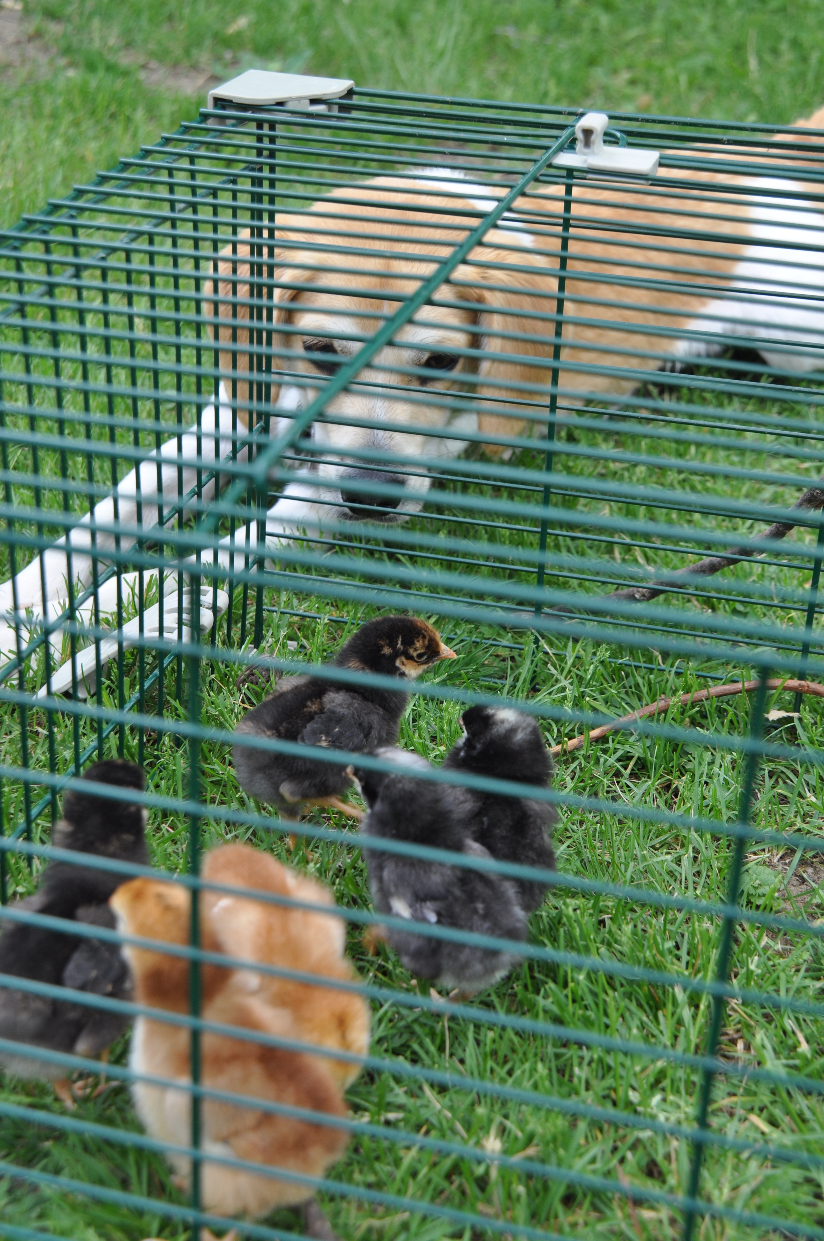 We got 6 chicks – 2 Buckeyes, 2 Dominiques, and 2 Golden Wyandottes. We chose these breeds for their hardiness, productivity, and variety of feather patterns – I wanted a flock with some visual diversity…